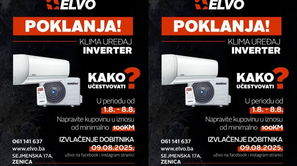 ROĐENDANSKA NAGRADNA IGRA – ELVO d.o.o VAS NAGRAĐUJE! Povodom rođendana firme, ELVO d.o.o iz Zenice organizuje nagradnu igru za sve svoje vjerne kupce! U periodu od 1. do 8. augusta 2025. godine, svi koji obave kupovinu u minimalnom iznosu od 100,00 KM automatski učestvuju u nagradnoj...