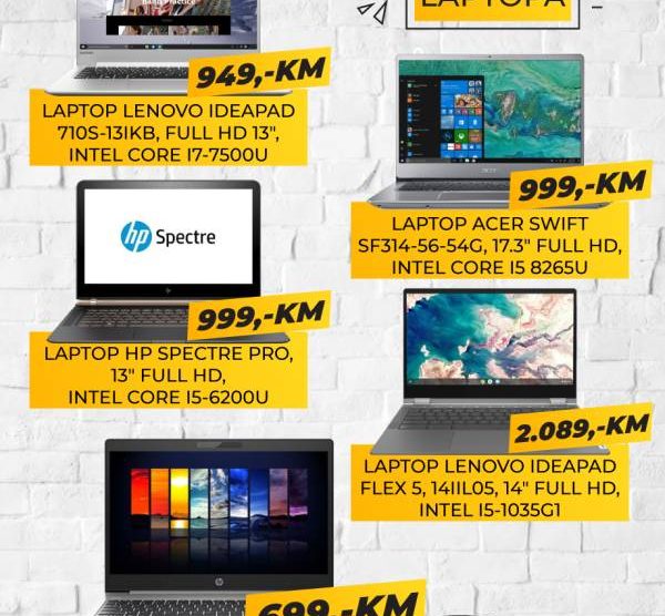 “Akcija laptopa u Procomp-u: Model: HP LANGKAWI 19C1 + TORBA GRATIS Ekran: 15.6 ” Full HD Procesor: Intel Celeron N4020 dual RAM: 4GB DDR4 (2400 MHz) SSD: 256GB Grafička karta: Intel UHD Graphics Operativni sistem: Nema OS Garancija: 12 mjeseci *Akcijska cijena: 699,- KM *Rata već...