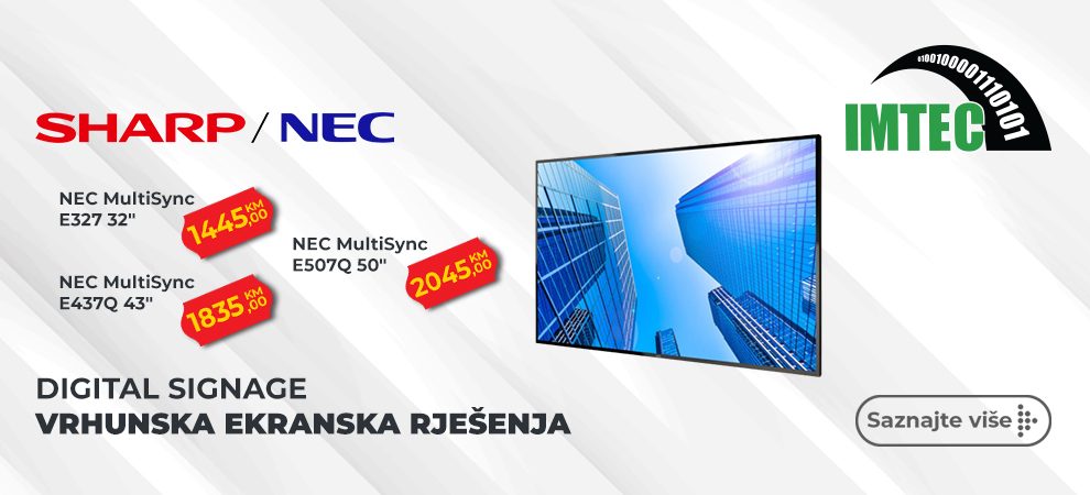 DIGITAL SIGNAGE: VRHUNSKA SHARP / NEC RJEŠENJA- Digital signage – ekransko rješenje je sve više rasprostranjeno u javnim prostorima i zajedničkim prostorijama kompanija, jer su digitalne reklame medij kojim se komunicira s različitom publikom, publikom koja je najčešće u pokretu...
