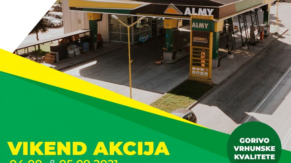 AKCIJA -10kf/l na benzinskim pumpama ALMY u Zenici, Sarajevu i Zavidovićima na dane vikenda 04. i 05.09.2021.
