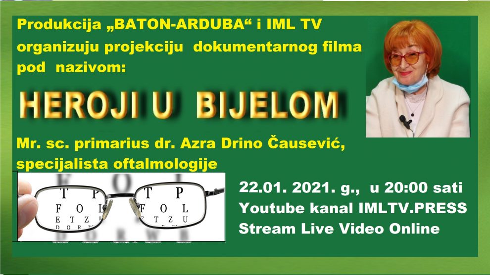 VIDEO: Heroji u bijelom- primarius dr. Azra Drino-Čaušević – U cilju isticanja historijskih događaja i znamenitih ličnosti Bosne i Hercegovine, produkcija „BATON-ARDUBA“ i IML TV , organizovali su projekciju dokumentarnog filma pod nazivom: HEROJI U BIJELOM, mr. nauka primarius...