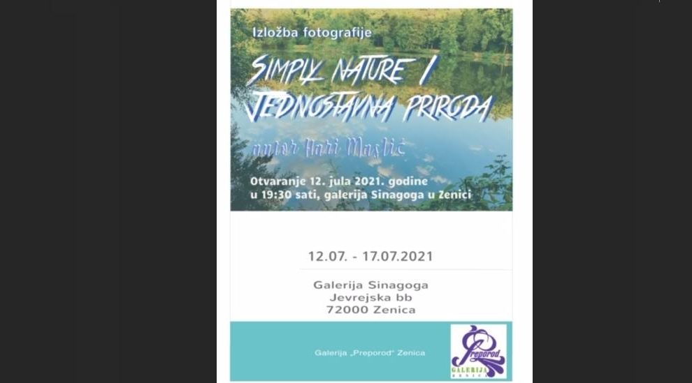 BZK “Preporod“ Galerija “Preporod” iz Zenice ,u okviru svojim planiranih aktivnosti,organizuje Izložbu fotografija, pod nazivnom „Simply nature/Jednostavno priroda“ ,autora Harija Maslića. Hari Malić je rođen u Mrkonjić Gradu ,a dugi niz godina živi i radi u...