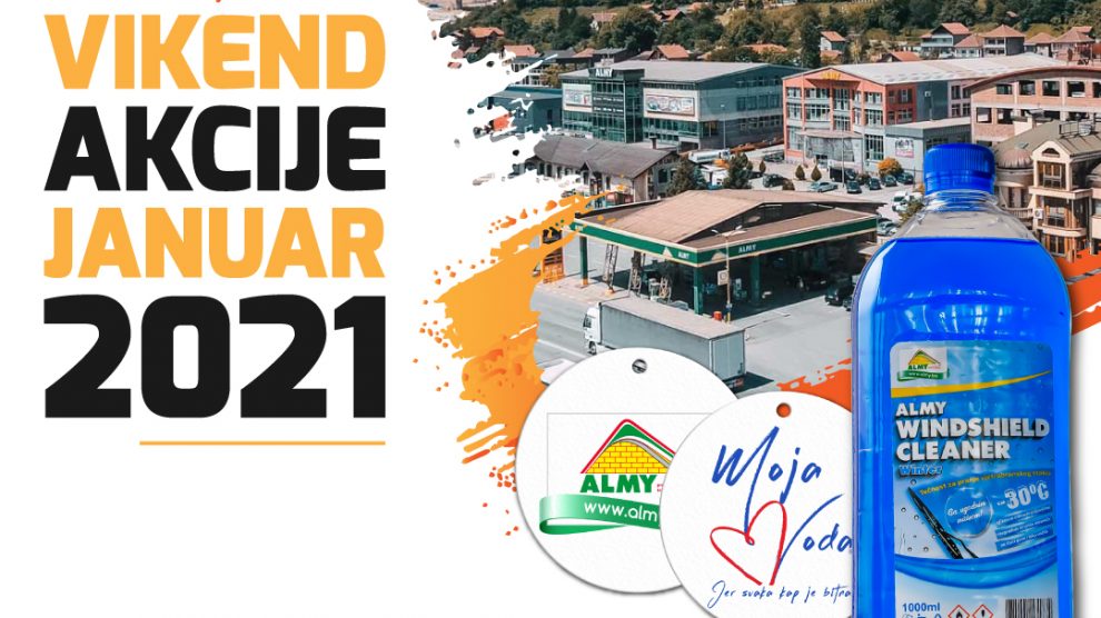 Vikend akcije kompanije Almy u januaru 2021. godine! Svi naši dragi kupci će tih dana dobiti GRATIS automiris, a kupci sa računima većim od 30,00KM će dobiti 1 lit. tečnosti za šajbu! Akcija će trajati slijedećih dana: – 03.01.2021. – 10.01.2021. – 17.01.2021. – 24...