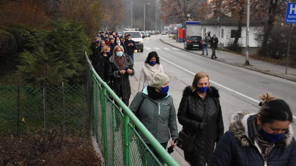 Nezavisni struktovni sindikat radnika zaposlenih u zdravstvu Federacije Bosne i Hercegovine (NSSRZUZ FBiH), Osnovna organizacija Kantonalna bolnica Zenica (KBZ), organizirao je danas mirnu protestnu šetnju, odnosno javno okupljanje u pokretu. Nešto više od 200 radnika šetnju je počelo...