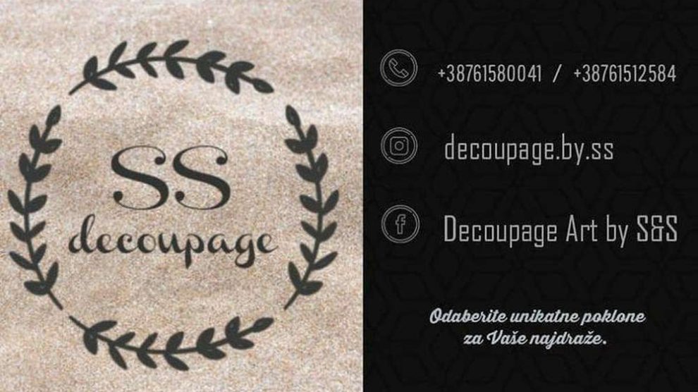 Decoupage Art by S&S Sve je počelo odlukom za učešće na kreativnoj radionici projekta „Budi kreativan i TI!“. Bila je to prava odluka jer je radionica opravdala očekivanja dvije studnetice koje su odmah po dolasku kući uzele četke u ruke i počele vježbati naučeno. Dani, sedmice i...