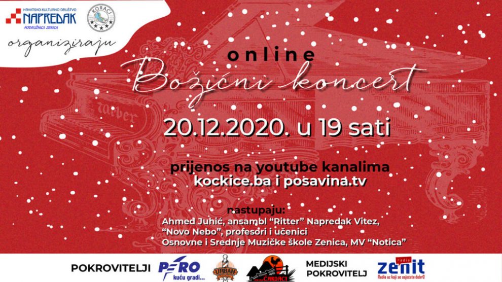 Božićni koncert HKD Zenica- nedjelja 19h – Hrvatsko kulturno društvo „Napredak“ iz Zenice u suradnji sa Organizacijom „Koraci“ u nedjelju, 20. 12. 2020. godine sa početkom u 19:00 sati organizira Tradicionalni Božićni koncert klasične muzike u prostoru Hrvatskog doma „Kralj...
