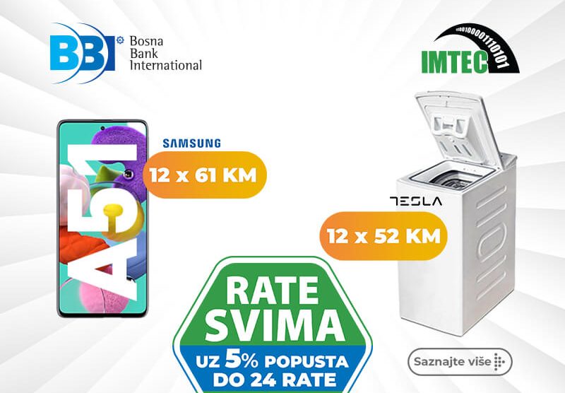IMTEC I BBI BANKA: RATE SVIMA UZ 5% POPUSTA – IMTEC je u saradnji sa BBI Bankom omogućio kupovinu na 12 ili 24 mjesečne rate svima uz popust od 5%. Ukoliko uređujete ili opremate vaš dom u IMTEC ponudi možete pronaći raznovrstan asortiman bijele tehnike i kućanskih aparata, kao i...