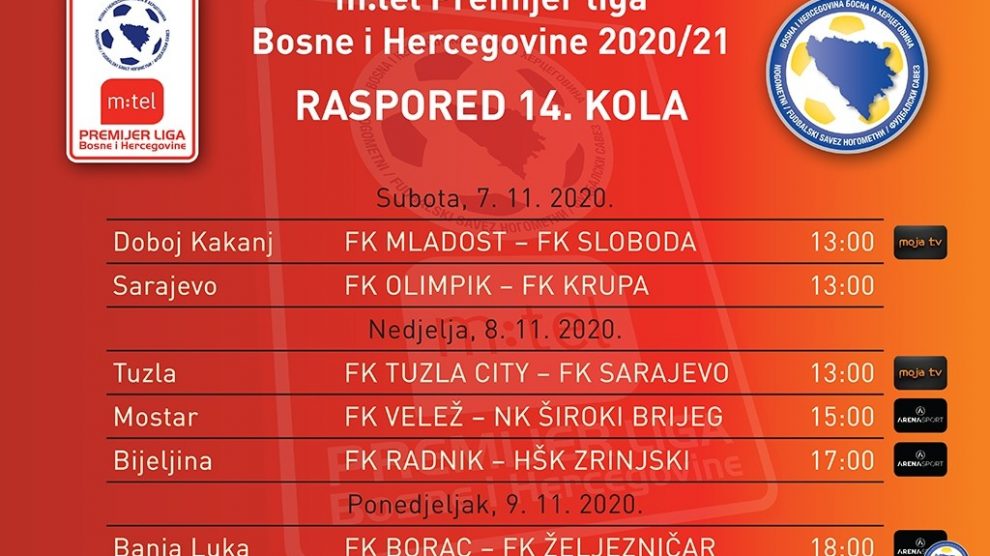 Od ove subote do ponedjeljka na rasporedu 14. kolo m:tel Premijer bh. lige u nogometu – Četrnaesto kolo m:tel Premijer bh. lige u nogometu bit će odigrano od subote do ponedjeljka, 07.11.do 09.11.2020.godine, a na rasporedu je šest utakmica. U subotu se igraju dvije utakmice, u...