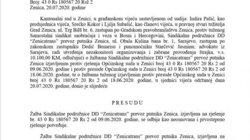 Grad Zenica izgubio spor kojim je tražio prekid štrajka radnika Zenicatransa – Vrhovni sud Federacije BiH odbacio je zahtjev Grada Zenica za Reviziju presude Kantonalnog suda u Zenici od 20. jula 2020. godine kojom je poništena i preinačena presuda Općinskog suda u Zenici...