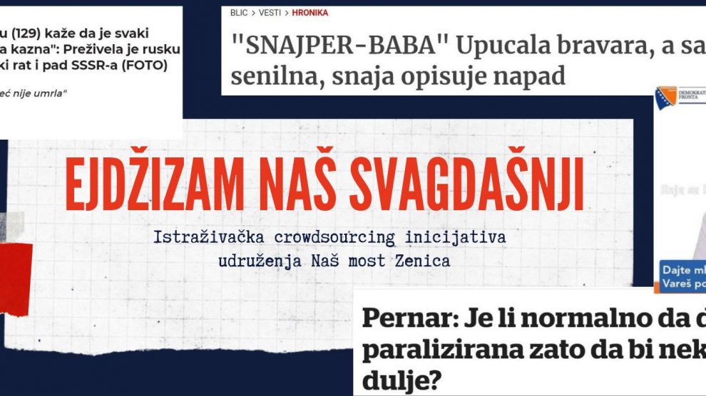 Naš most Zenica pokreće inicijativu za dokumentovanje ejdžizma u medijima – Udruženje Naš most Zenica pokreće crowdsourcing inicijativu za prikupljanje, analizu i razgolićavanje medijskih sadržaja koji na površan, banalizovan i stereotipan način izvještavaju o starijim osobama u BiH...