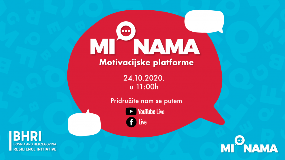 Pratite uživo Motivacijske platforme u četiri bh. grada – Projekat „Mi o nama“ nastavlja promociju autentičnih priča iz BiH – U sklopu projekta „Mi o nama“, podržanog od strane BHRI (Bosnia and Herzegovina Resilience Initative) programa, organiziraju se četiri Motivacijske...