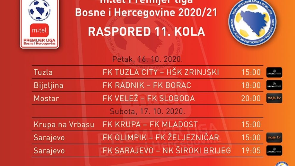 Ovog petka i subote na rasporedu jedanaesto kolo m:tel Premijer bh. lige u nogometu – Nakon reprezentativne pauze, 11.kolom nastavlja se m:tel Premijer bh.liga u nogometu. Jedanaesto kolo bit će odigrano u petak i subotu, 16. i 17.10.2020.godine, a na rasporedu je šest utakmica. Po...