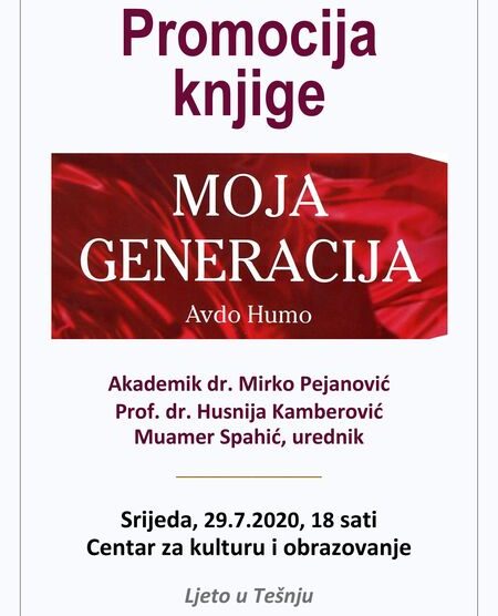 Promocija knjige “Moja generacija” Avde Hume – Centar za kulturu i obrazovanje, u okviru manifestacije Ljeto u Tešnju, organizira promociju knjige „Moja generacija“ autora Avde Hume. Riječ je o novom izdanju posthumno objavljenim Huminim sjećanja na jednu generaciju...