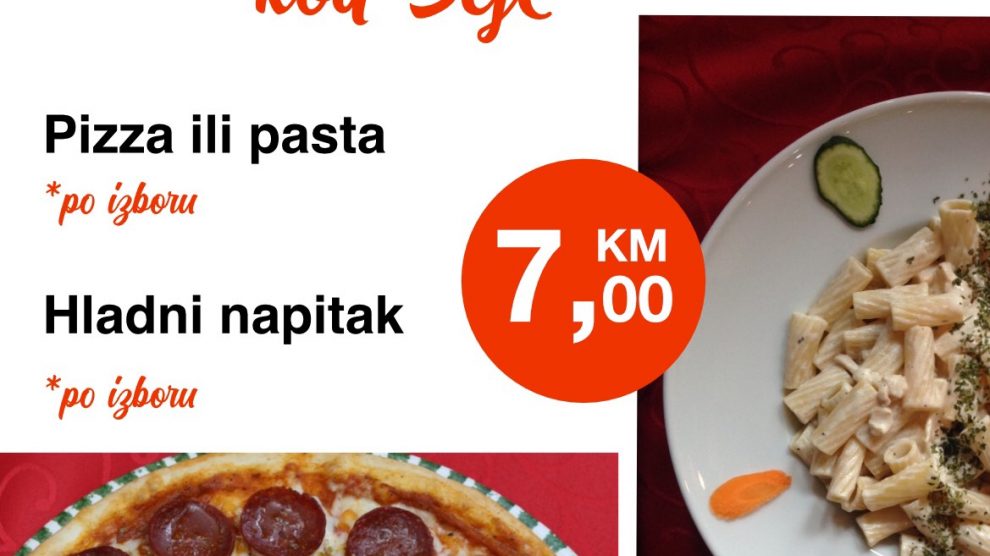 Restoran kod Seje ima odličnu ponudu večere- jedna od naših ukusnih pizza (margherita, fungi, capricciosa, vegetariana ili calzona) ili pasti (paste roma , bolognese, curry ili pasta al forno) uz hladni napitak po izboru, po cijeni od 7 KM! Pored ručka koji svaki dan serviramo od 12 do 17...