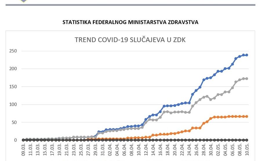 Pozivamo građane da se pridržavaju uputa i mjera kriznih štabova, a sve one koji obnašaju funkcije vlasti na angažman, solidarnost i službu narodu. Borimo se za zdravlje svakog čovjeka, borimo se za svako radno mjesto. Samo zajedno možemo pobijediti! COVID-19 STATISTIKA ZA ZDK 10.05.2020...