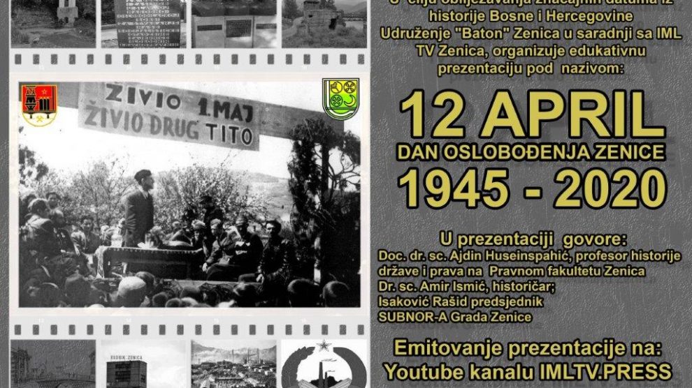 Dan oslobođenja Zenice – 12. april 1945-2020. – historijski osvrt kroz prizmu 75 godina poslije – U cilju obilježavanja značajnih datuma iz historije Bosne i Hercegovine, Udruženje “Baton” Zenica u saradnji sa IML TV Zenica, organizuje edukativnu...