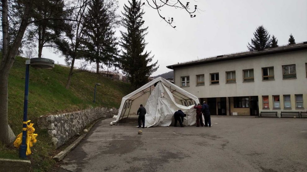 Kantonalna uprava civilne zaštite Zeničko-dobojskog kantona postavila je danas trijažni šator na ulazu u Službu za infektivne bolesti Kantonalne bolnice Zenica. “Ranije je postavljen trijažni punkt na ulazu u KBZ, a na zahtjev ove zdravstvene postavili smo drugi šator u kojem će se...