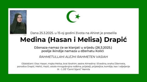 Preminula petnaestogodišnja učenica OŠ “Ćamil Sijarić” Nemila- Osnovna škola “Ćamil Sijarić” iz Nemile objavila je da je u 15...