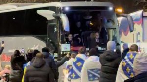 Nogomet Hiljade navijača dočekalo Zmajeve na ulazu na stadion u Beču, autobus jedva prošao 18.11.2025.