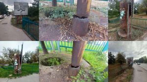 Naše FOTO: Opasnost kod Drvenog mosta, pohrđali puknuti oglasni stub “pridržava” saobraćajni znak 03.11.2024.