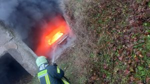 Zločini FOTO: Nepoznati napadači zapalili “Golf” kojim je jutros izvršeno razbojništvo nad blagajnikom “Tola company” 23.11.2021.