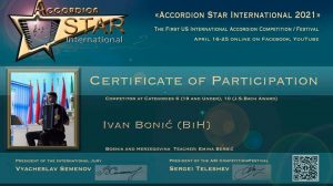 Info Ivan Bonić i Adi Kobilica učestvovali su na prvom online takmičenju “Accordion Star International 2021” 26.04.2021.
