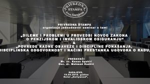 Info Seminar o primjeni novog Zakona o PIO i disciplinskoj odgovornosti radnika u FBiH 19. aprila u Sarajevu 12.04.2018.