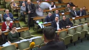 Politika VIDEO: Sjednica GV Zenica prekinuta nakon što je viječnik Keleštura gradonačelnika Kasumovića gađao rokovnikom i materijalima 13.03.2018.