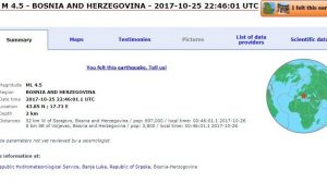 Info EMSC: u prvom satu četvrtka zabilježena tri zemljotresa, 46, 50 i 58 minuta nakon ponoći 26.10.2017.