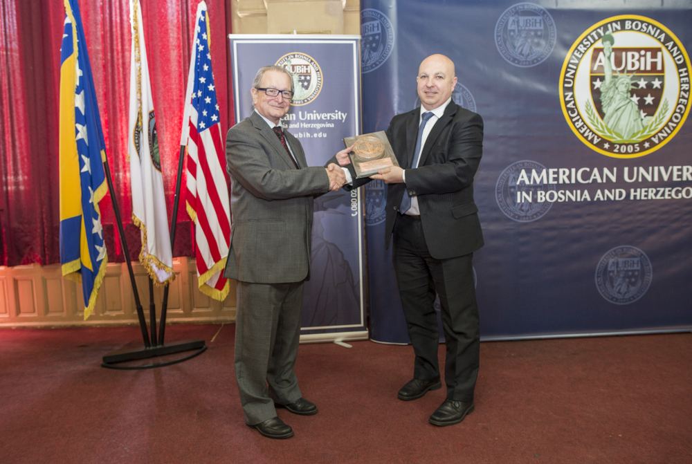 Nakon predavanja studentima, predsjednik Američkog univerziteta u Bosni i Hercegovini Denis Prcić dodijelio je predsjedniku MKSJ Leadership Award za veliki trud uložen u dosadašnji rad suda.