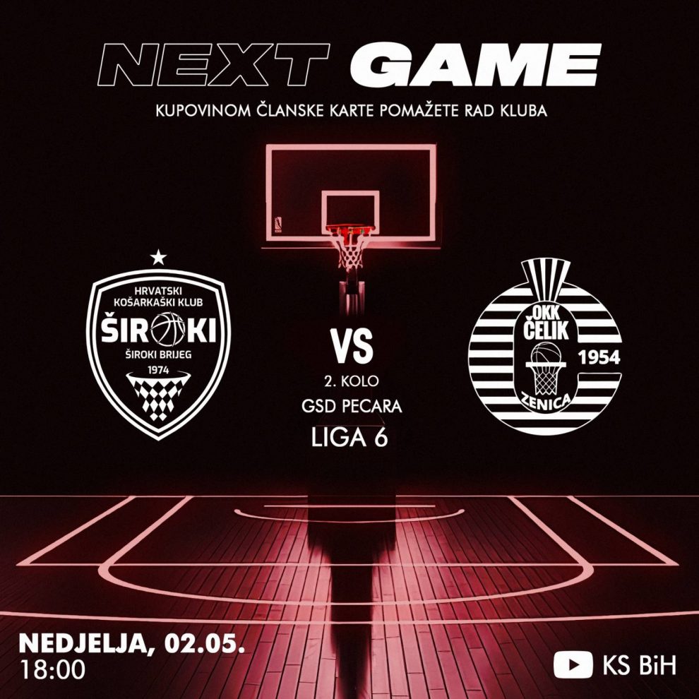 U drugom kolu Lige 6 košarkaši zeničkog OKK Čelik gostuju kod ekipe HKK Široki. Utakmica je na rasporedu ove nedjelje, 02.maja 2021.godine, od 18 sati u GSD Pecara u Širokom Brijegu. Prijenos utakmice moći će se pratiti na youtube kanalu KSBiH. U dvije ligaške utakmice rezultat u pobjedama je bilo 1:1, u Širokom Brijegu bilo je 70:59 za Široki, dok je u Zenici slavio Čelik sa 99:84, nakon produžetka.
