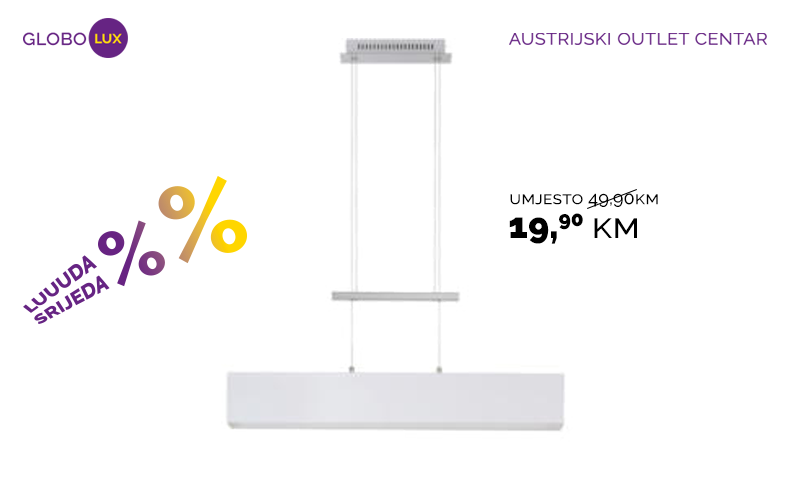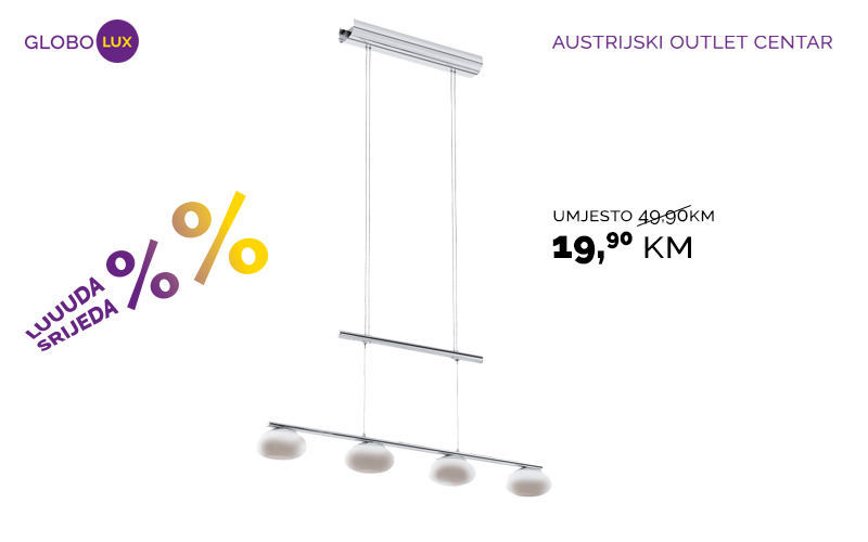 Razni modeli lustera, plafonjera i lampi, poznatih brendova Philps i Eglo, već od 4,90 KM.