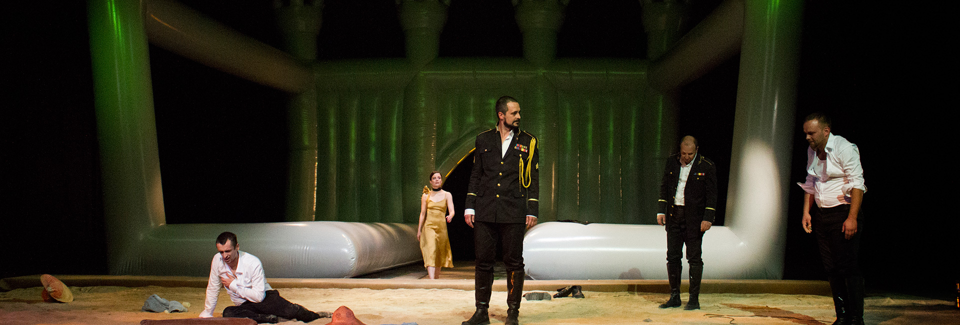 U predstavi igraju Enes Salković, Saša Handžić, Darja Rizova, Gjorgji Jolevski, Zlatan Školjić, Aleksandar Gjorgjevski, Dženana Džanić, Tamara Miličević-Stilić, Aleksandar Mihajlovski i Aksel Mehmed. Scenografkinja predstave je Višnja Vujović, kostimografkinja Ivana Karamfilovska Ugurovska, kompozitor Duke Bojadziev, dok je scenski pokret bio povjeren Dimitrisu Sotiriju.