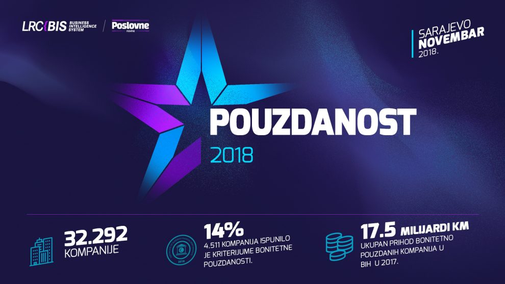 Informacije o finansijskom poslovanju, poslovnim analizama i rizicima, ključni su podaci za donošenje kvalitetnih odluka kompanija, ali i jasan pokazatelj ekonomske stabilnosti jedne zemlje. Upravo zbog toga, najveća bonitetna kompanija u BiH – LRC d.o.o. Sarajevo, već četvrtu godinu zaredom realizira projekt ”POUZDANOST”, s ciljem da se na domaćem tržištu identificiraju firme koje bilježe natprosječne poslovne rezultate.