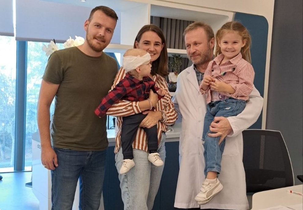 Na fotografiji koju je objavio Pomozi.ba su njegovi roditelji i sestra, te ljekar koji ga je operisao.