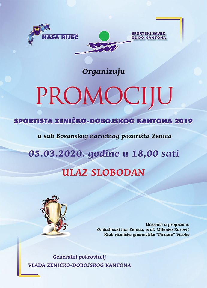 MANIFESTACIJA “SPORTISTA ZDK 2019” – U četvrtak promocija najboljih – Sve je spremno za Manifestaciju “Sportista Zeničko-dobojskog kantona 2019” koju Naša riječ priprema u suorganizaciji sa Sportskim savezom ZDK, a koja će se održati u četvrtak (05. marta) sa početkom u 18,00 sati u Bosanskom narodnom pozorištu Zenica.