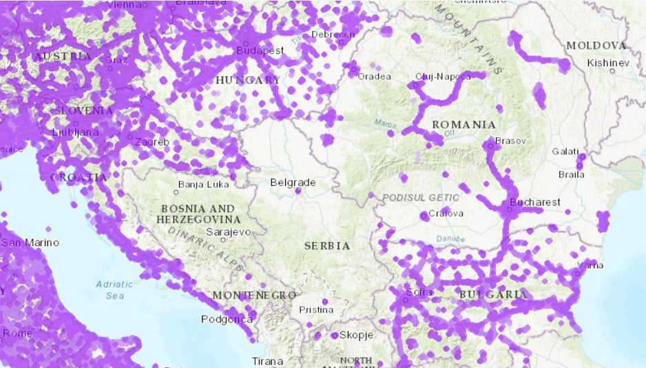 Ipak, kada se pogleda mapa, najmanja rasprostranjenost 5G mreže može se primijetiti na području Balkana.