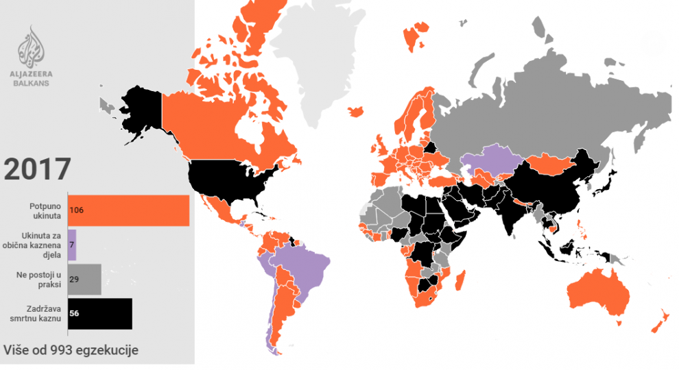 “Bahrein, Jordan, Kuvajt i Ujedinjeni Arapski Emirati nastavile su izvršavati smrtne kazne u 2017. godini. Amnesty International nije zabilježio izvršenje ovih kazni u pet zemalja – Bocvani, Indoneziji, Nigeriji, Sudanu i Tajvanu, zemljama koje su prethodne godine izvršavale pogubljenja 2016. godine”, navodi se u izvještaju čiji se detalji mogu naći na ovom linku.