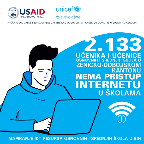 Nakon dobijenih podataka o IKT opremljenosti škola, UNICEF je obezbjedio 131 laptop za 21 osnovnu i srednju škola u Zeničko-dobojskom kantonu. Uz laptope UNICEF je dostavio i interaktivnu mapu našeg kantona na kojoj su predstavljene sve školske zgrade, odnosno centralne i područne škole, sa osnovnim podacima o broju učenika, nastavnog i nenastavnog osoblja škole, te brojčano stanje IKT opreme i kvalitet interne konekcije.
