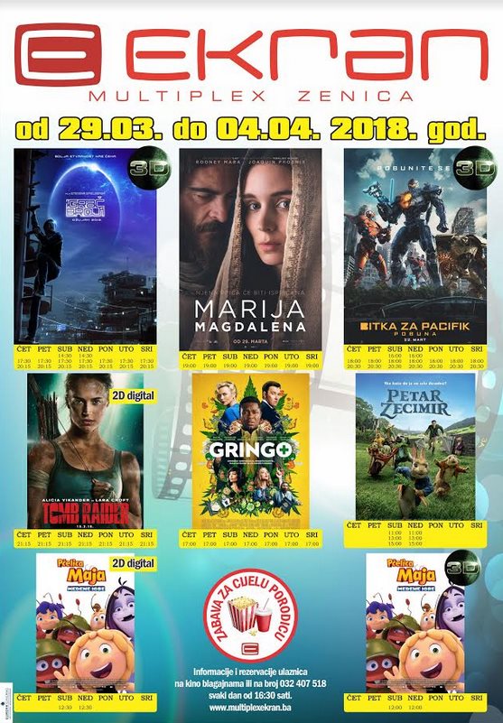 Historijska drama i inspirativna ljudska priča “MARIJA MAGDALENA” i akciona naučno fantastična avantura “IGRAČ BROJ 1 (3D)” od 29. marta na programu Multiplexa Ekran Zenica