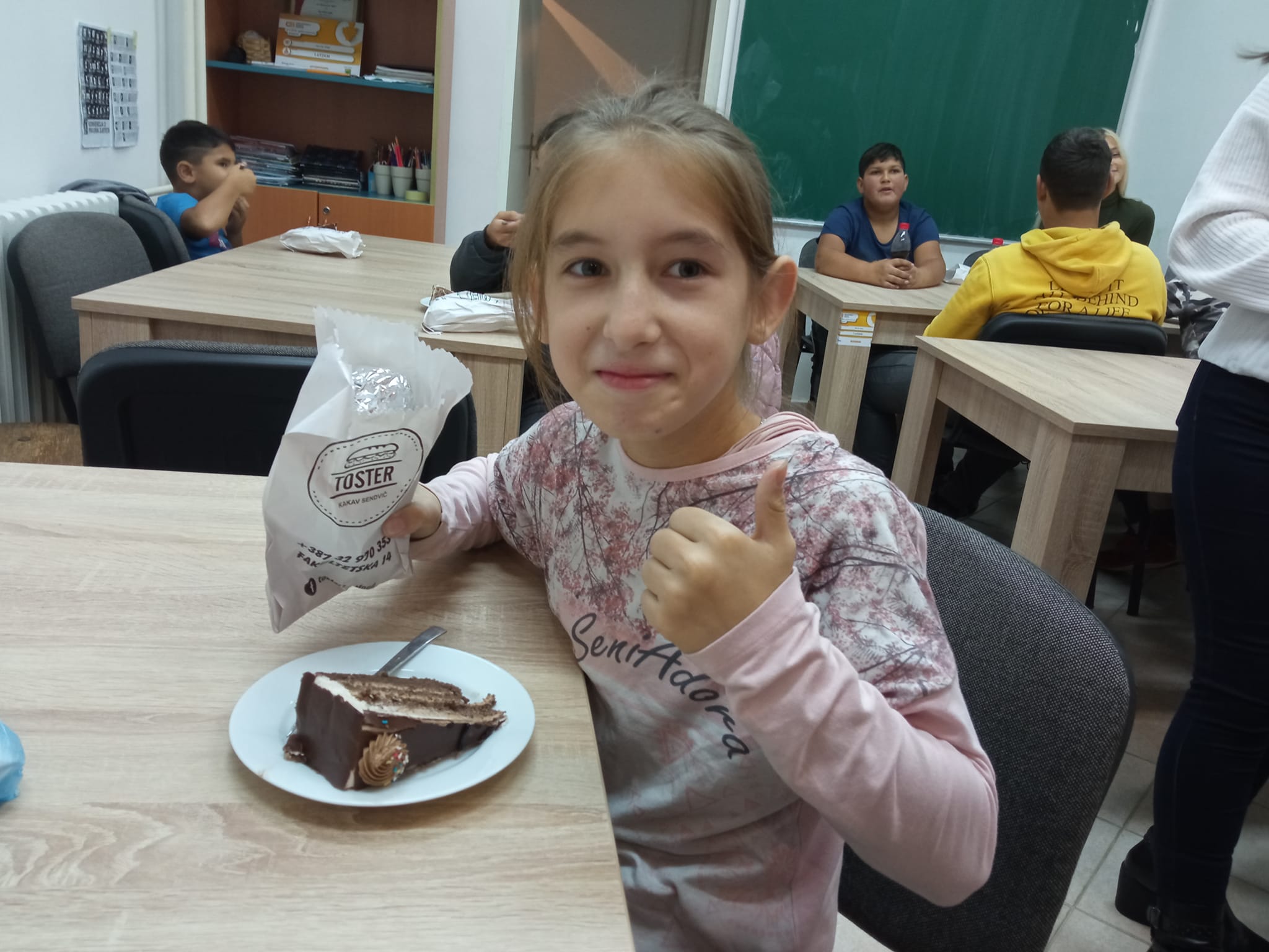 I naravno, uz pomoć naših, slobodno možemo reći, stalnih donatora Fast Food Toster i Slasticarna” Kristal 4″ Babina Rijeka djecu smo obradovali sa sendvičima i čokoladnom tortom ❤️