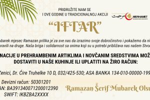 Ovim putem želimo podsjetiti da “Merhamet” Regionalni odbor Zenica, tradicionalno, i ove godine organizuje akciju “IFTAR”, te da uz zajedničko učešće u ovoj akciji, doprinesemo da radost iftara osjete i oni koji su u stanju socijalne potrebe.