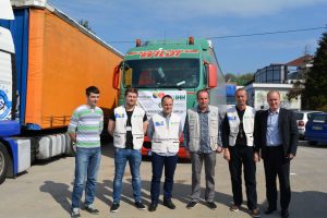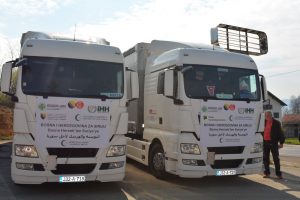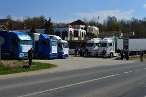 MFS – EMMAUS: Krenulo 16 šlepera pomoći za Siriju – Jutros je iz Brijesnice za Siriju krenuo treći, do sada najveći konvoj pomoći, od 16 šlepera domaće, humanitarne, nevladine organizacije MFS-EMMAUS. Donacija se sastoji od 340 t brašna, 22.000 litara ulja i 8 paleta dječijih pelena.