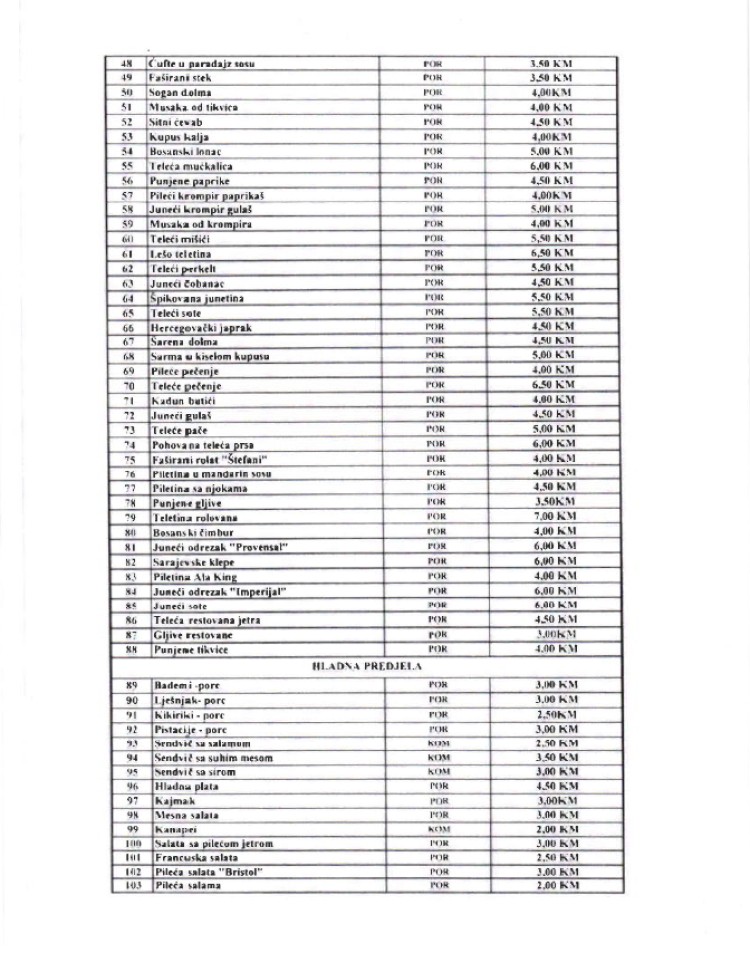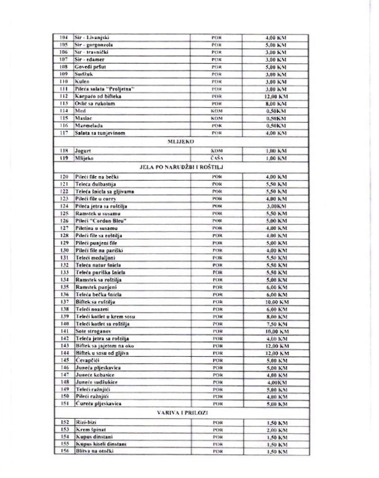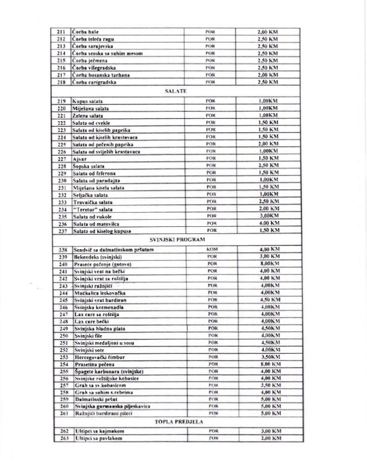 “Skočile” su i cijene priloga, pa će tako pekarski krompir plaćati 1,5 KM umjesto marku.