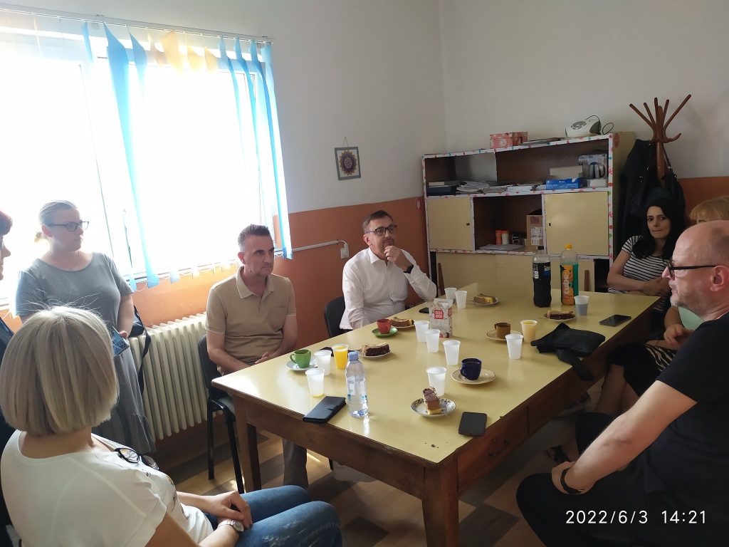U ugodnom ambijentu,održan je radni sastanak sa Direktorom škole, nastavnicima i Senadom Bašićem, istaknutim prijeteljem škole.