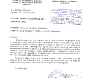 Naime, Porezna uprava FBiH 3.12.2024. od Ministarstva finansija FBiH, kao svog nadležnog organa, traži upute kako da postupaju s obzirom na gore navedene Presude Ustavnog suda FBiH.