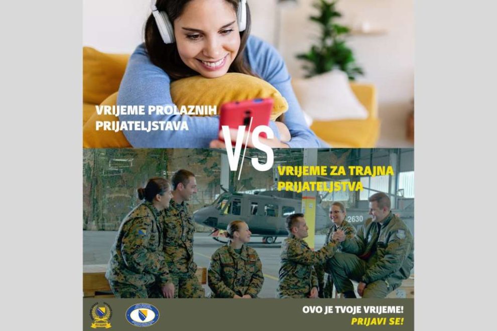 Ministarstvo odbrane Bosne i Hercegovine danas je, kao i svake godine, objavilo oglas za prijem 400 djevojaka i mladića u profesionalnu vojnu službu u Oružane snage BiH, s rokom prijave od 21 dan od dana objavljivanja na službenoj web-stranici Ministarstava.