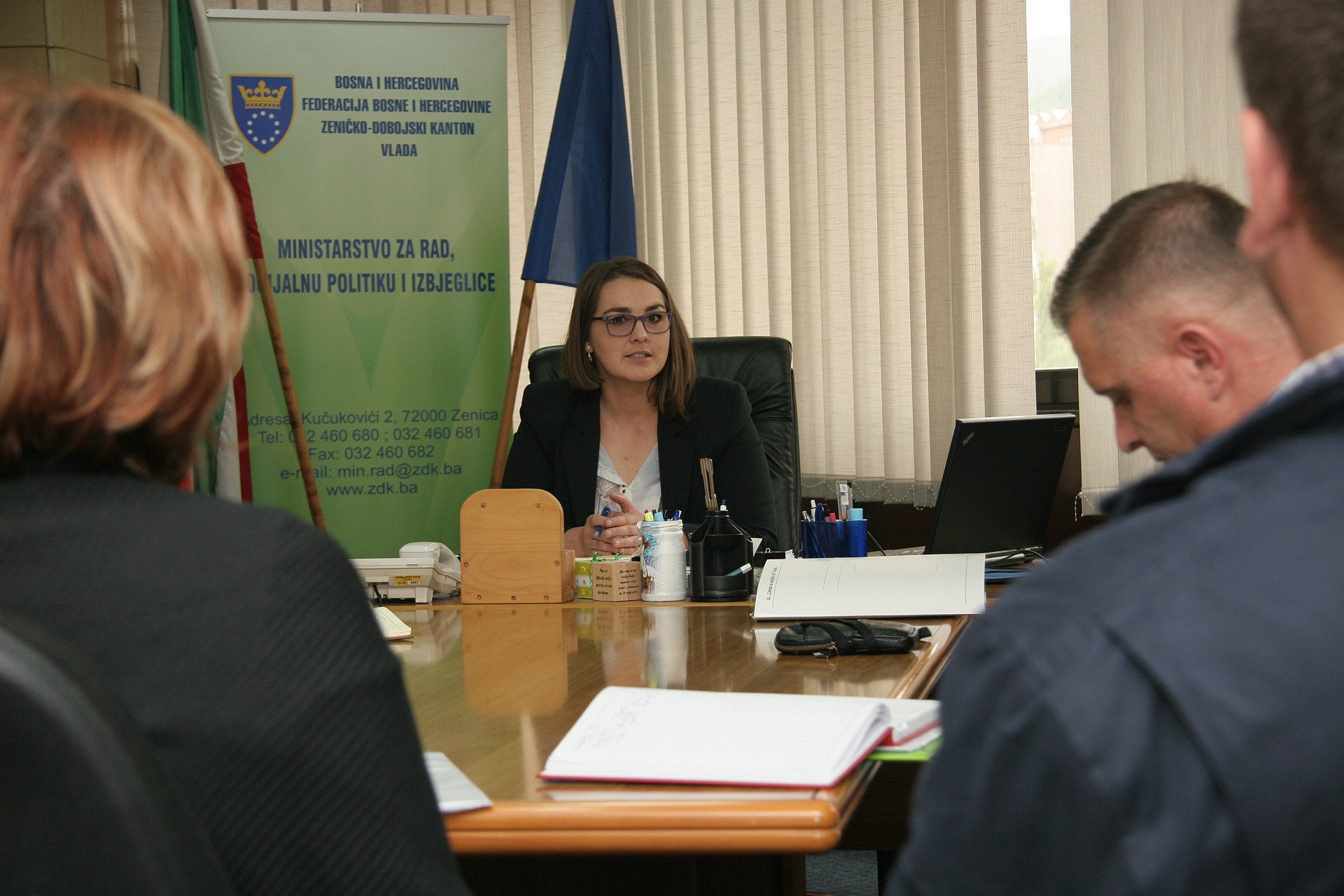 Ministrica Šabanović održala radni sastanak sa rukovodiocima centara i službi socijalne zaštite u ZDK – Ministrica za rad, socijalnu politiku i izbjeglice Azra Šabanović održala je prvi radni sastanak sa rukovodiocima centara za socijalni rad i nadležnih općinskih službi socijalne zaštite sa područja Zeničko-dobojskog kantona. Ocijenjeno je kako je dosadašnja međusobna saradnja resornog ministarstva i ovih ustanova bila uspješna, posebno kod rješavanja problema i donošenja propisa u oblasti socijalne zaštite.