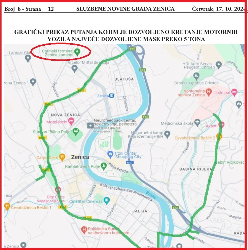 Možda nije povezano, ali krajem prošle godine Gradsko vijeće usvaja novu, može biti vidovitu, Odluku o organizaciji i sigurnosti saobraćaja na području Zenice, gdje na ruti predviđenoj za dozvoljen saobraćaj vozila preko pet tona nosivosti nema ucrtanog prilaza za terminal unutar Željezare.
