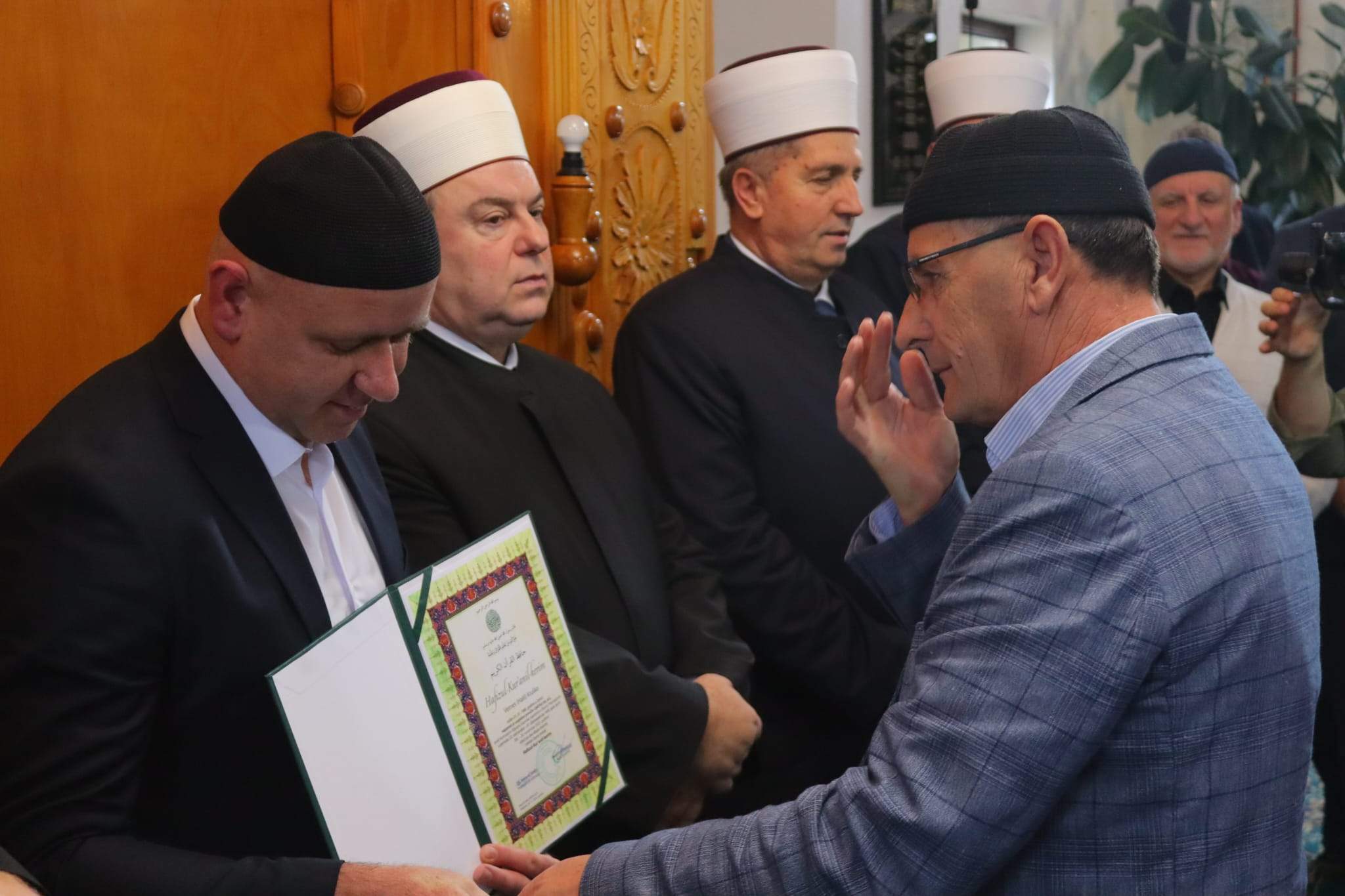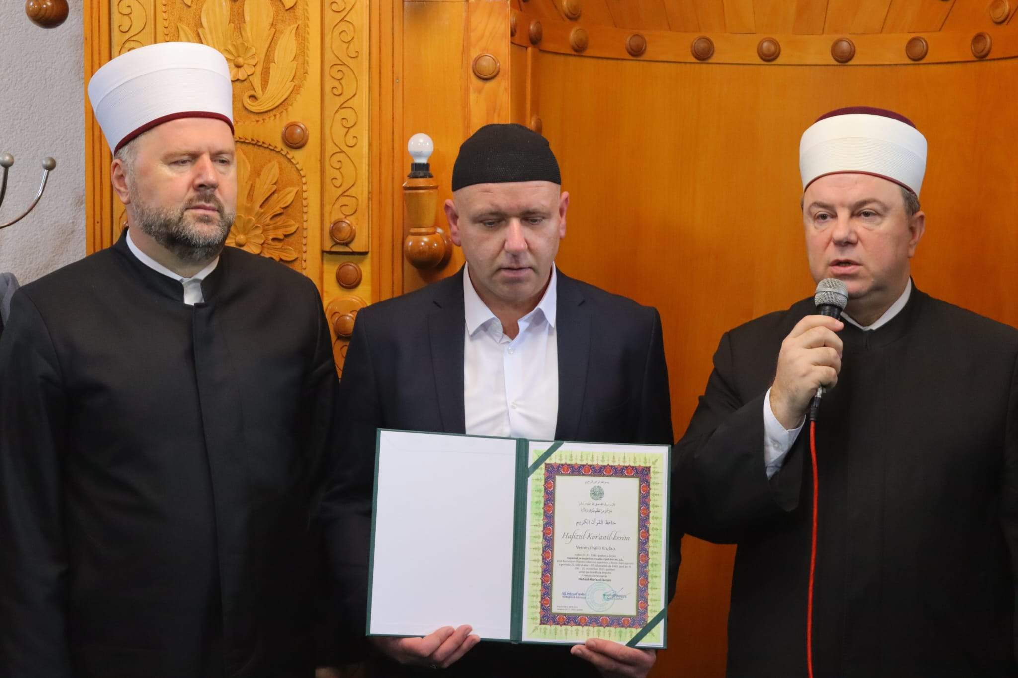 Samom svečanom činu uručivanja diplome i proglašavanje hafizom Časnog Kur’ana hafiza Vernesa Kruške prethodilo je obraćanje izaslanika reisul-uleme hafiza dr. Mensur-ef. Malkića, koji je prenio selame i čestitke reisul-uleme hafizu i porodici.